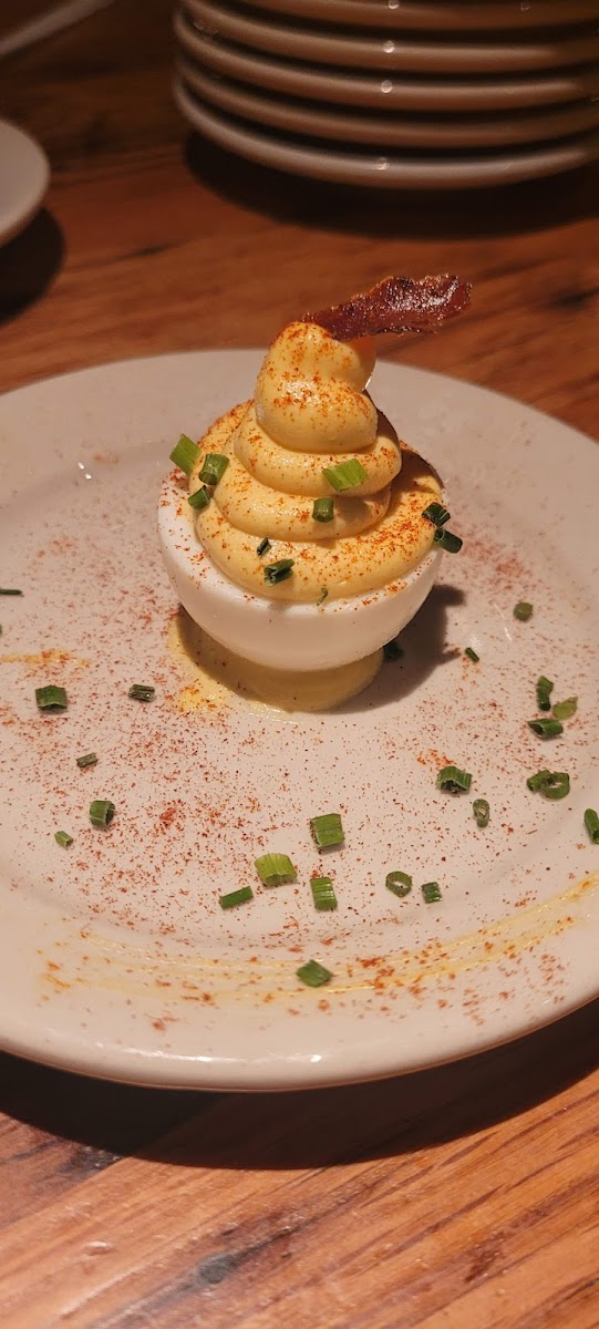 Highly recommend making a reservation for dinner. First time here, and it was delicious! Came on a Tuesday night for a 7:45pm reservation. We were a party of 6 and nearly every table was filled. The place is large but still feels very cozy. Everything on the menu is tapas (small plates to share). We ordered a ton of dishes and passed them around the table. The Pintxos menu is perfect when you want a bite or two. The deviled eggs were delicious! Each order is half an egg, and we ended ordering 4 each! The classic sangria is not too sweet, and it was on the dryer side of red wine which I prefer. No dish was a miss! We ordered deviled eggs, the shaved Brussels sprout salad, tortilla española, spinach & manchego-stuffed mushrooms, garlic shrimp, fried calamari, hangar steak, handmade beef empanada, ibérico ham croquetas, secreto pork baos, piri-piri fried chicken thighs, chicken & chorizo skewer, and the mixta paella (all paellas take 45 min to make). Everything was delicious; we only had leftovers of the tortilla española and the mixta paella, but they were great too! Our server was great as well. Checked in a few times (ended up ordering more dishes) but not too many times. Overall, delicious food and cozy atmosphere. Would definitely come back again!