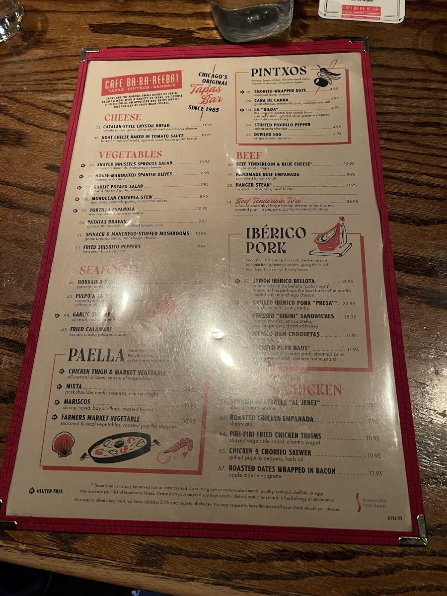 Cafe Ba-Ba-Reeba! offers a thoughtfully curated menu inspired by traditional Spanish cuisine, centered around small plates meant for sharing. The selection encourages leisurely dining, where friends and families can savor a variety of flavors throughout lunch, dinner, or weekend brunch. This approachable tapas-style menu pairs well with casual conversations and the lively, warm atmosphere the restaurant is known for.
